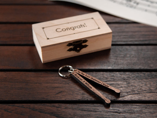 Give the perfect gift to the drummer in your life with our custom-engraved drumsticks! Personalize them with a name or message, for a unique keepsake they’ll cherish.